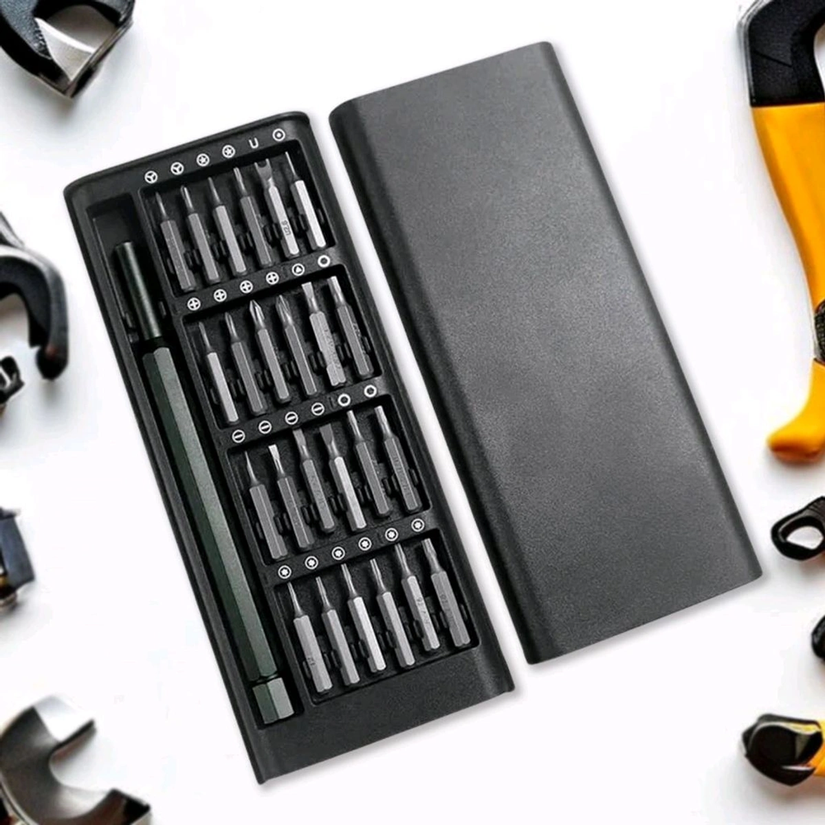 Upgrade your toolkit with this high-quality 24-in-1 precision screwdriver set, crafted with an anodized aluminium alloy handle for strength, durability, and style. Whether you're fixing a phone, tightening eyeglasses, or disassembling a laptop—this kit is all you need.