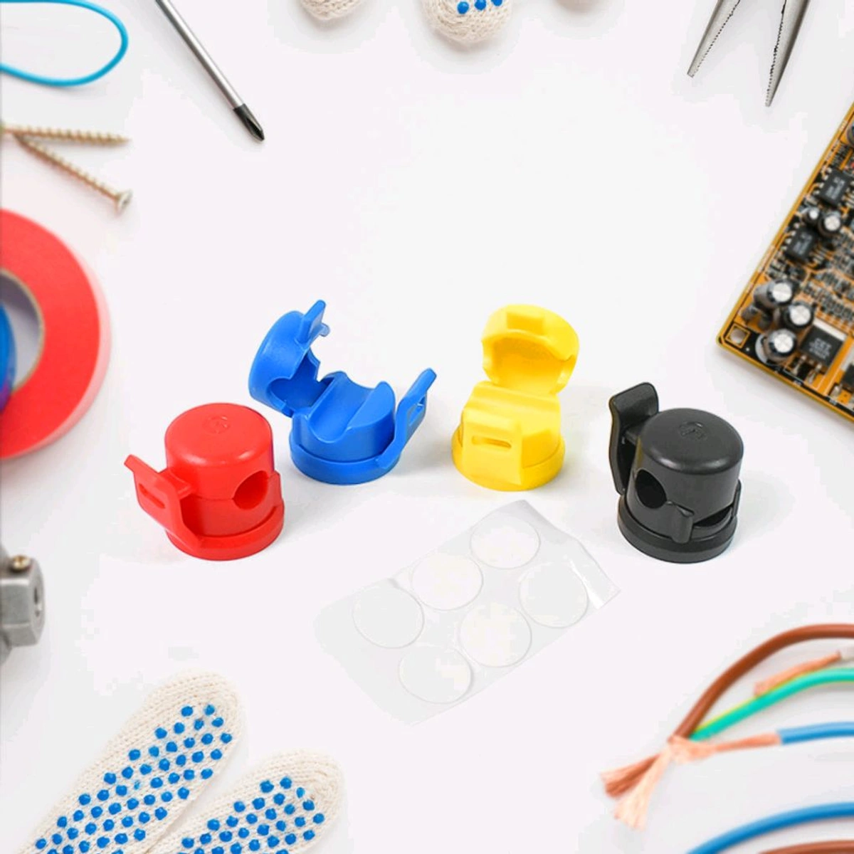 - Our set includes 4 cable holders in 4 vibrant colours, allowing you to colour-code and distinguish your cables effortlessly. This abundance of clips ensures you have enough to organize cables in various areas of your home or office.