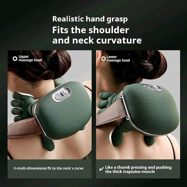 Heated Hand-Grip Neck & Shoulder Massager, Realistic Finger Kneading • Deep Muscle Relief • Wireless Comfort