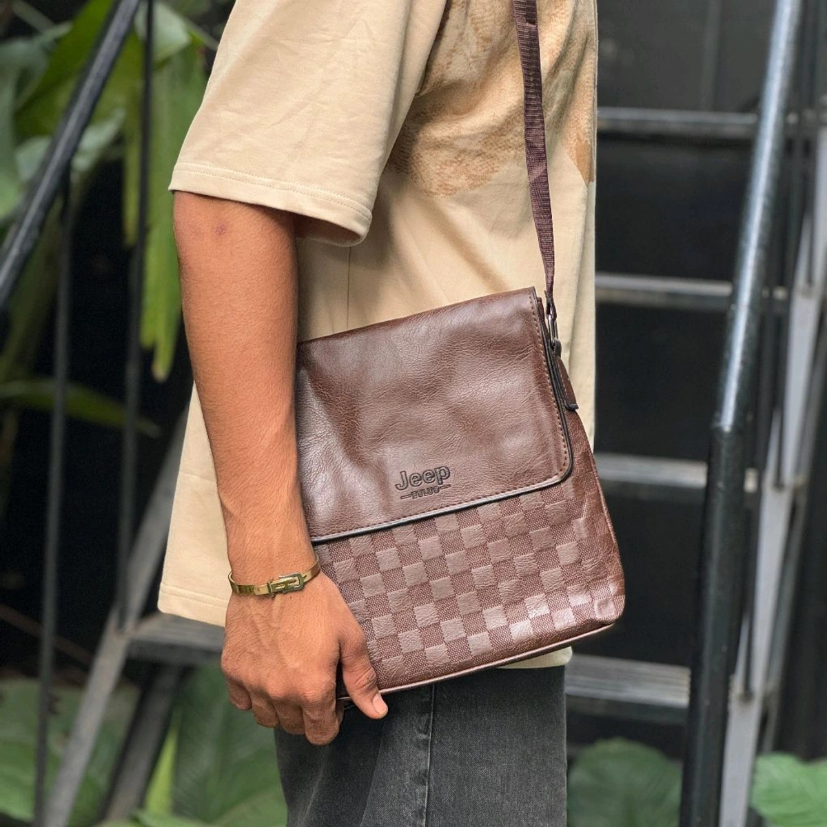 Jeep Crossbody Sling Bag - PU Leather Shoulder Bag with Adjustable Strap, Flap Cover, and Textured Design | Casual Travel Side Bag for Daily Use, Office, or Bike Ride (Jeep Style)