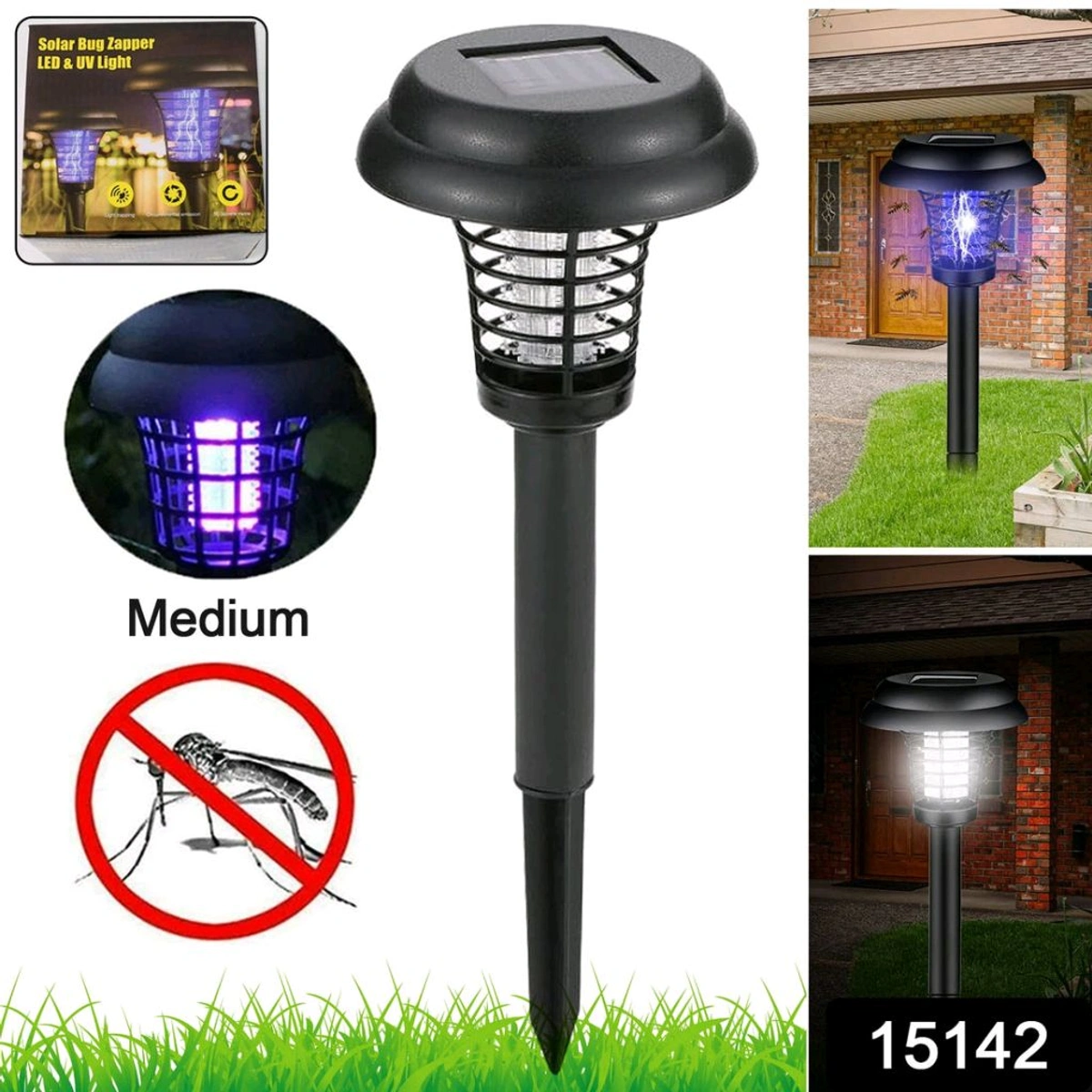 Medium UV LED Solar Powered LED Mosquito Trap / Bug Zapper, Protection Against Mosquito Insects, Solar Lights with Bug Zapper and Garden Lighting, Dual Modes for Small Insects Yard Garden Lawn Light Lamp (1 Pc)