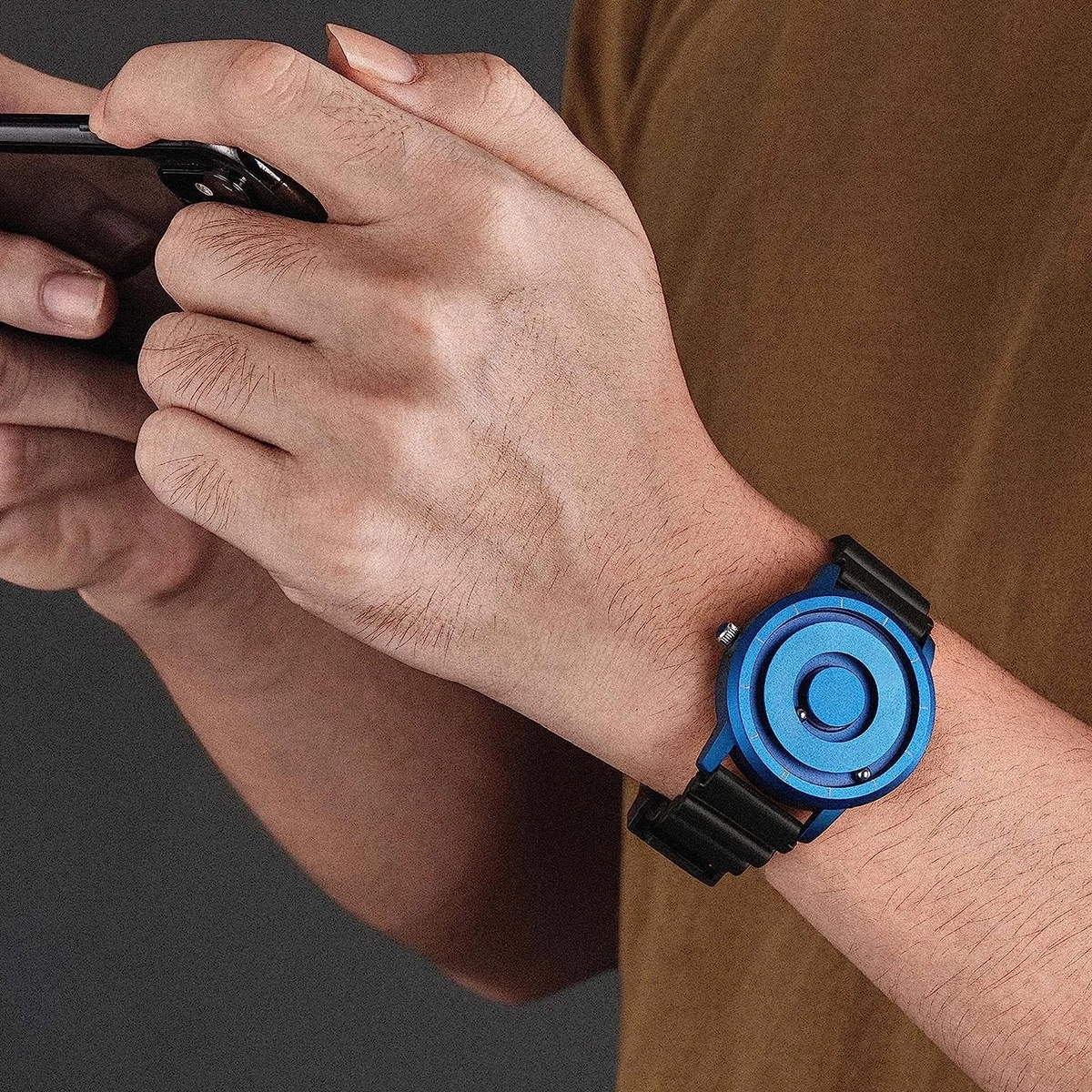 Unconventional Original:Two magnetized ball bearings travel around the watch face in separate, recessed tracks. Due to the unique internal structure of magnetic watches, the pointers are designed into an inner minute pointer and an outer hour pointer to achieve stable performance and extended longevity. Many customers say that they have adapted after using the watch for a while.