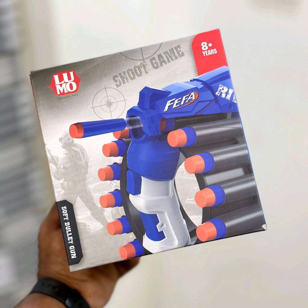 Unleash non-stop action with this Soft Bullet Rotating Ring Toy Gun — the ultimate blaster for kids aged 8 and up!
